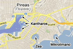 Kantharos is Piraeus’ most important and greatest wharf. All large ships, including cruise ships, cargo ships and big fishing vessels dock in Kantharos. This harbor is not interesting for tourists.